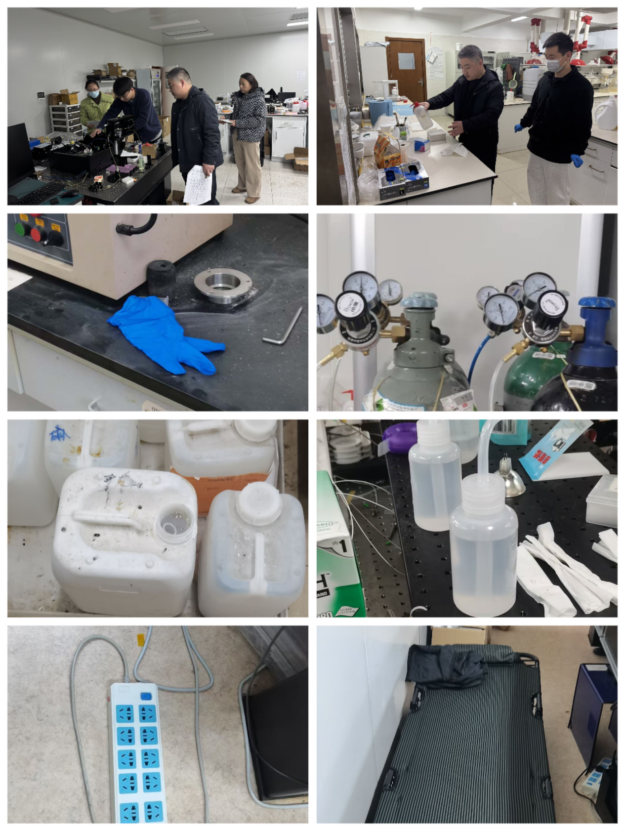 针对本次检查发现的部分实验室存在气瓶压力表不符合要求、无应急处置卡及更换记录卡、气瓶用气管老化、化学品柜药品清单未及时更新、试剂无标签、安全责任书未及时张贴、使用老国标插排且落地摆放、高温炉旁放置橡胶手套、废液桶无标签且未设置废液区、实验室内存放食物及床铺、未穿着实验服等问题,学院逐一通知相关房间负责人限期整改,并逐项复核,确保形成闭环管理。