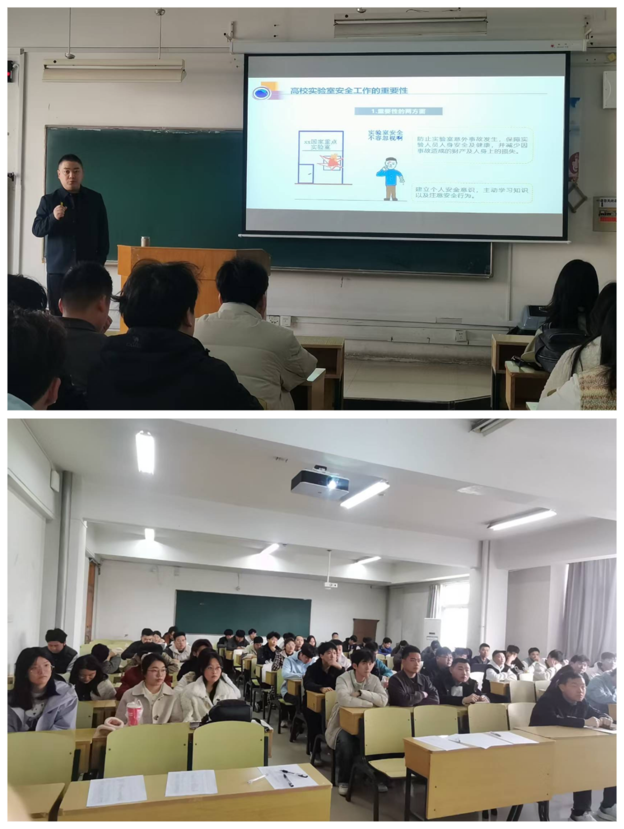3月26日,学院分管领导面向全院研究生开展实验室安全教育,结合近期高校事故案例,阐释安全工作重要性,围绕危化品使用防护、危险源辨识等内容,梳理我院实验室常见危险源及注意事项,引导研究生树牢安全理念、严守操作规范、筑牢科研安全防线。